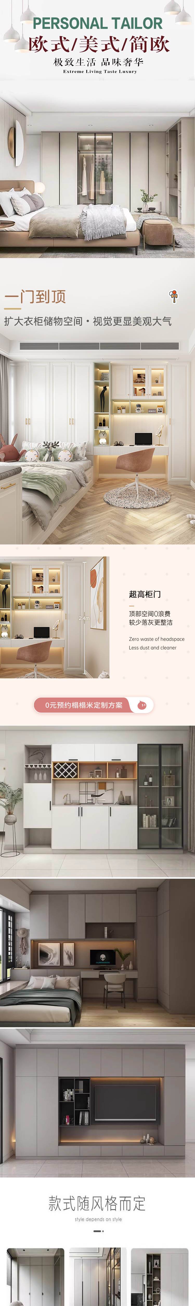 云杉板实木衣柜定制 意式简约家装PUR全屋整装 免费量尺